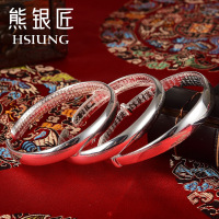 熊银匠银手镯女999纯银2018新款光面银镯子简约银手环银饰送女友