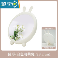 敬平可爱卡通ins风化妆镜女生家用便携小镜子台式桌面梳妆镜简约卧室 白色萌萌兔便携式用镜