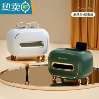 敬平纸巾盒家用客厅轻奢抽纸盒茶几遥控器收纳盒多功能创意纸抽盒 两只装(轻奢绿+象牙白)