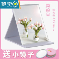 敬平镜子化妆镜学生宿舍小镜子女随身便携带手持折叠镜子男士ins风 特大号[25*-18cm]简约白?? -送随便携式用镜