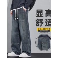 全松紧拼接牛仔裤男款直筒美式潮流街头痞帅青少年抽绳宽松长裤