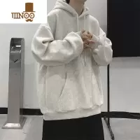 YANXU纯色连帽卫衣男灰色宽松oversize上衣服潮牌高街男生外套