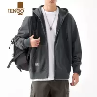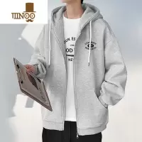 YANXU美式连帽卫衣男春季潮牌宽松复古上衣款男生灰色开衫外套