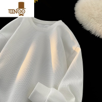 YANXU华夫格长袖T恤男潮流小衫套头上衣宽松休闲条纹打底衫卫衣