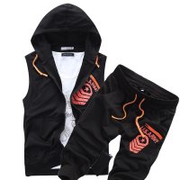 丹杰仕 Y73*新款印花夏季男士无袖外套休闲开衫卫衣短套装*黑色*P50小咖秀百搭潮