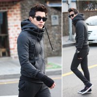 步来褶惠2014加绒加厚韩版连帽开衫卫衣男套装潮外套男装夏
