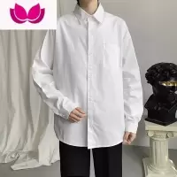 七斓白色衬衫男士长袖宽松DK制服套装内搭打底学生班服休闲学院风衬衣