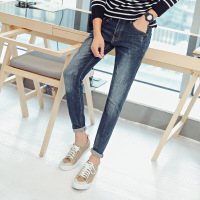 2017新款2017春夏季新款休闲牛仔裤女破洞九分裤韩版修身显瘦哈伦裤小脚裤