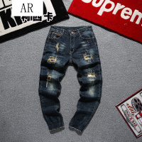 秋季新品乞丐牛仔裤男小脚裤修身男生破洞韩版束脚牛仔裤图色