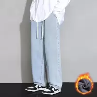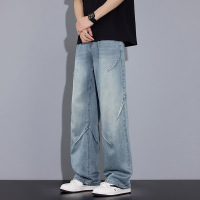 牛仔裤男士新款春秋款宽松直筒浅蓝色阔腿长裤子男生春季男款