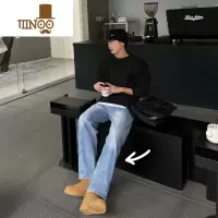YANXU2023韩版ins超火经典洗水浅蓝牛仔裤青年宽松直筒裤九分裤男