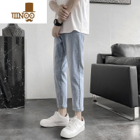 YANXU夏季薄款浅蓝色九分牛仔裤男士潮牌韩版潮流宽松9分修身小脚裤子