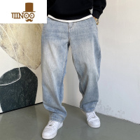 YANXU美式休闲痞帅复古怀旧浅蓝色牛仔裤男直筒宽松百搭阔腿裤子