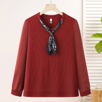春秋新款妈妈装T恤衫洋气拼接款中老年女装时尚简约绸带款50岁女
