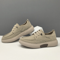 男生头层牛皮厚底板鞋男款潮鞋真皮百搭欧洲站男鞋男士透气休闲鞋