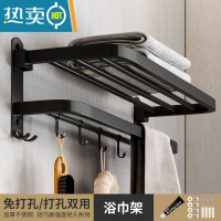 敬平浴室毛巾架免打孔卫生间毛巾杆挂架厕所挂杆不锈钢收纳壁挂置物架 [304耀夜黑]60CM 浴巾架浴室置物架