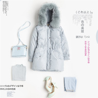 珂依舍2017秋装新款2017冬装新款中长款外套女大毛领连帽收腰斗篷型羽绒棉服