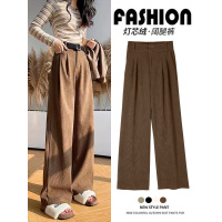 美拉德棕色灯芯绒裤子女秋冬新款加绒西装裤小个子咖色阔腿裤