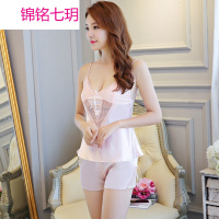 锦铭七玥睡衣批发新款仿真丝绸薄款吊带短裤套装性感蕾丝诱惑家居服两件套