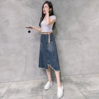 顺崇2018夏季新款女欧韩范A字不规则开叉牛仔裙包裙休闲半身裙678