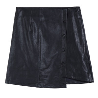 顺崇2018春春新款小皮裙高腰a字不规则皮裙黑色PU半身裙包臀裙女