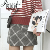纪尼诗2018秋冬新款高腰格子开叉A字口袋不规则半身裙女