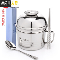 三维工匠不锈钢饭盒便当盒学生饭缸双层带盖男上班族快餐杯食堂打饭餐盒 不锈钢手柄碗盖款/加厚款1个(带勺筷盒)