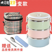 三维工匠304不锈钢饭盒便当盒时尚简约学生食堂分格男带盖便携分隔女餐盒 精致手提保温袋1个(可装3个饭盒)