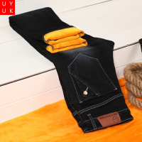 UYUK加绒牛仔裤男秋冬季加厚保暖带绒直筒修身长裤韩版潮流加棉裤子男深蓝色
