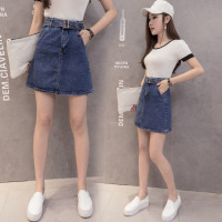 薇侣2017新品实拍夏季铜扣送腰带装饰韩版包臀A字高腰牛仔半身裙子女短裙