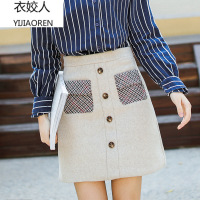 衣姣人(YIJIAOREN) 2018女装春装新品文艺淑女范单排扣色加厚高腰毛呢短裙