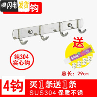 三维工匠304不锈钢衣钩挂衣钩壁挂勾排钩衣帽钩浴室卫生间厨房免打孔挂钩 304圆4钩[送同款]