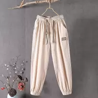 棉麻裤女2023夏高腰松紧腰宽松显瘦亚麻刺绣薄款九分灯笼裤女