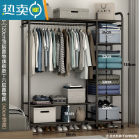 敬平晾衣架落地卧室折叠室内杆式晒衣架简约家用挂衣服架子收纳置物架 125cm-(柜式衣架顶配款)+黑色+多层置物网