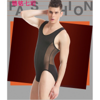 锦铭七玥男士塑身连体衣超薄 锦纶+网银透气运动性感透明内衣男