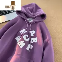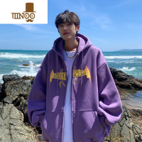 YANXU蝴蝶印花紫色连帽卫衣男潮牌美式复古水洗做旧宽松大码外套