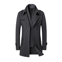 毛呢大衣秋冬新款脱卸围巾羊毛呢子大衣男士中长英伦呢子外套