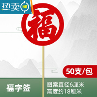 敬平喜字艺术竹签水果签冷菜摆盘装饰长牙签创意盘饰竹签水果叉 福 [50支/包]