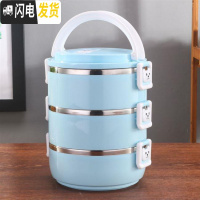 三维工匠不锈钢保温饭盒多层学生饭盒单层双层三层可爱便当盒大容量圆形 北欧蓝3层
