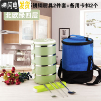 三维工匠上班族餐盒套装双层保温饭盒桶2三层学生不锈钢便当盒1人便携多层 4层北欧绿[送餐具+保温袋]