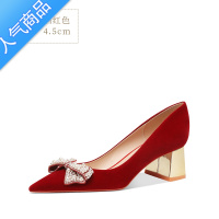 SUNTEK红色秀禾婚鞋女粗跟新娘鞋女2023年新款中式敬酒鞋结婚高跟鞋中跟