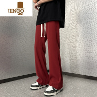 YANXU酒红色冰丝裤子男秋季新款痞帅感垂坠感西裤直筒宽松休闲长裤