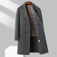 100%羊毛双排扣过膝长款羊毛大衣秋冬男士羽绒内胆双面呢大衣