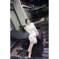 法式一字肩白色长袖连衣裙女春秋冬季高级感收腰内搭露肩打底长裙