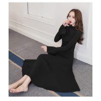 春季赫本风黑色长袖连衣裙子秋冬季新款女装显瘦内搭打底长裙