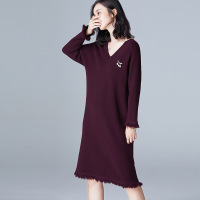 浪漫流苏双V领纯色针织连衣裙2018秋冬新款韩版中长裙CYLLDSJ