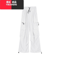 YIBUSHENG白色工装裤女季薄款2024新款高腰宽松直筒休闲降落伞登山阔腿裤