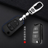 适用现代汽车钥匙包悦动瑞纳索纳塔八代瑞奕I30雅绅特13款途胜手缝真皮车遥控保护套两键精品扣蓝线七天无理由退货 品质保