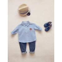 2017童装定制封 小童宝宝秋季磨毛棉 贴布胸章 翻领长袖衬衫