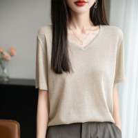 夏季冰丝凉感V领亮丝亲肤透气短袖女薄款针织显瘦百搭T恤上衣内搭